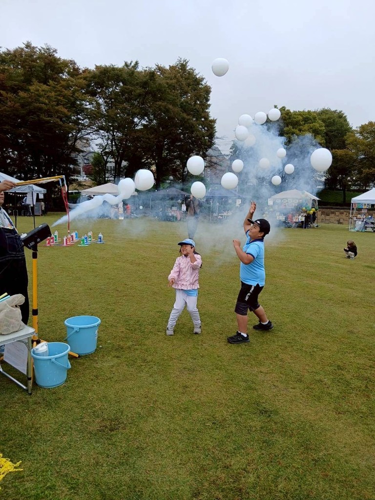 さらに不思議な体験も!白いシャボン玉をキャッチして割ると、中からモクモクと煙が飛び出したんだ!🫧💨 すごい魔法みたいだったね🧙♂️!