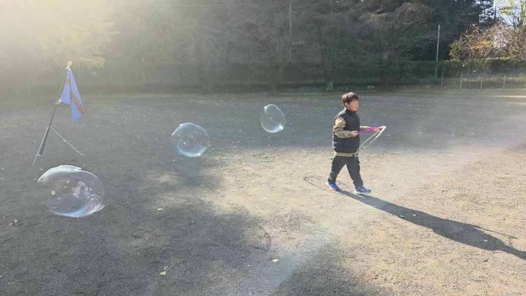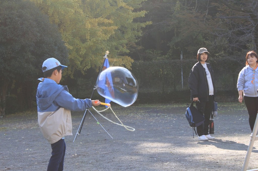 イベント開始前には、シャボン玉遊びでリラックス✨。そして、開会セレモニーでは、歌や簡単なゲームを通じて大人も子どもも輪になり、活動への気持ちを盛り上げました。「大人を含めて輪になって歌うのは楽しいですね」という感想もいただき、和やかな雰囲気でスタートすることができました😊。