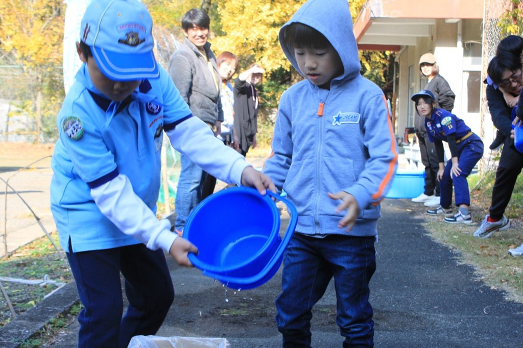 みんな、ちっちゃな消防隊になろう! もし地震などで火事になったらどうする? 昔の人は、バケツだけでなく鍋やあるものを使って水を運び、みんなで協力して火を消し止めたんだよ 💪。 この体験では、君たちがチームに分かれて、力を合わせて水を運ぶバケツリレーにチャレンジしました!水に濡れる心配も吹き飛ばし、「子どもがとてもはりきってやっていたのでよかった」「楽しくできました」と、みんな大活躍!声をかけあい、水をこぼさないように慎重に運ぶことで、「共助のちから」を実感するミッションとなりました✨。