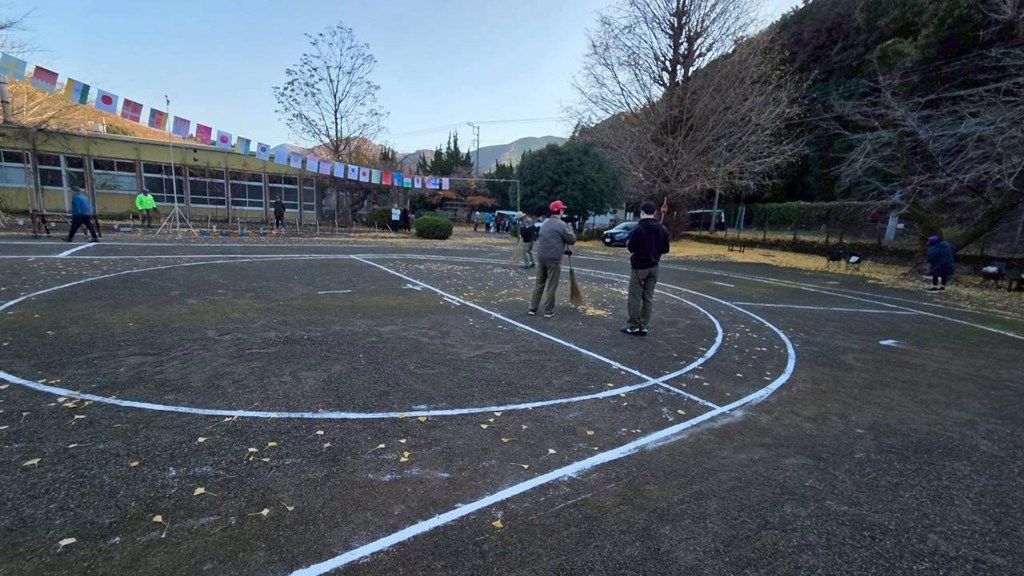 前日の午前中から、指導者やスタッフ総出で準備を開始!💪 グラウンドの整備、「モクモク(煙幕)」のリハーサル、万国旗や聖火台の作成など、手作り感満載で準備を進めました。 そして迎えた当日は、朝8時30分から入場門前のイチョウの落ち葉🍂を綺麗にお掃除し、万国旗を掲げて準備万端!