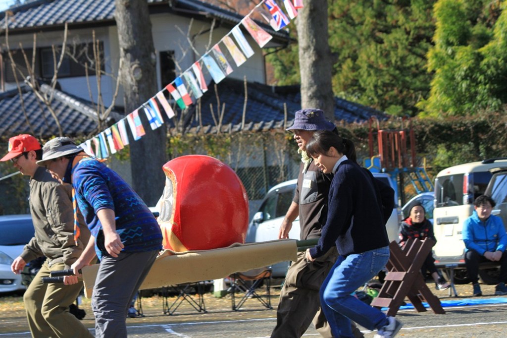 竹の担架に乗せた大きな赤ダルマを落とさないように、慎重に、でも素早く運びます。 ピタッと止まる姿と、慌てて進む姿のギャップが面白い!🤣