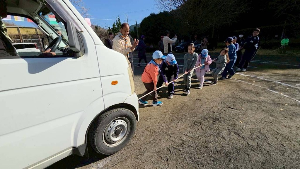 「オーエス!オーエス!」 みんなのパワーが集まって、重たい車が動き出した時の歓声は最高でした!✨