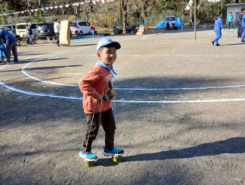 ここで一旦ブレイクタイム🍙 お楽しみの「カブ弁(お弁当)」をみんなで頬張ります😋 お腹がいっぱいになった後は、竹トンボを飛ばしたり、縄跳びをしたり。 学年や隊を超えて仲良く遊ぶ姿に、キャンプ場全体が和やかな空気に包まれました🌿