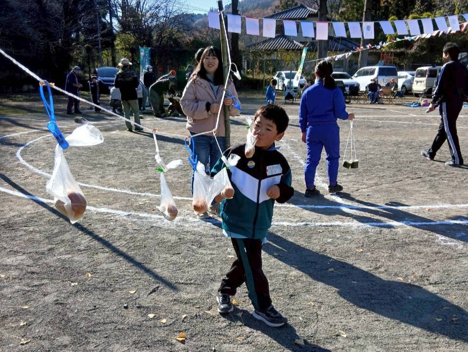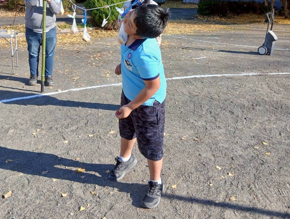 - パン食い競走:最後は大きなお口でパンをゲット!🥐