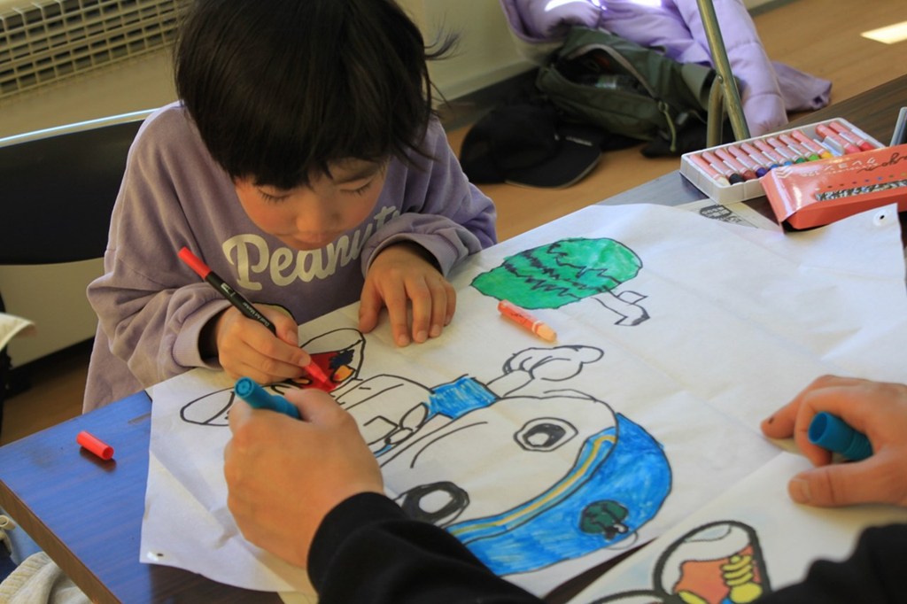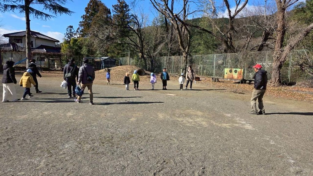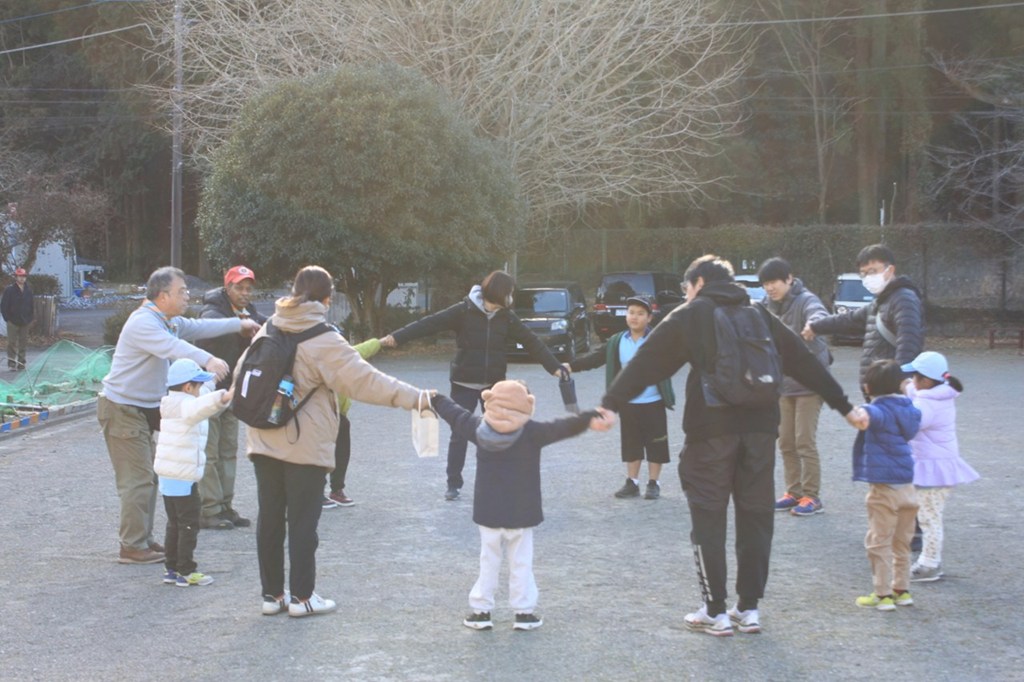 桐生地区キャンプ場で手作り凧あげ集会を開催しました。工作キットに絵を描いて凧を自作し、変化の激しい風に苦戦しながらも全力で走り回り、冬空高く舞い上がる凧を楽しみました。