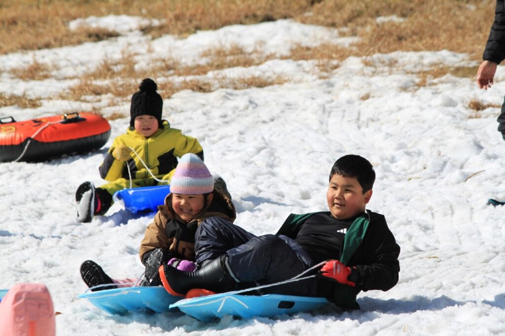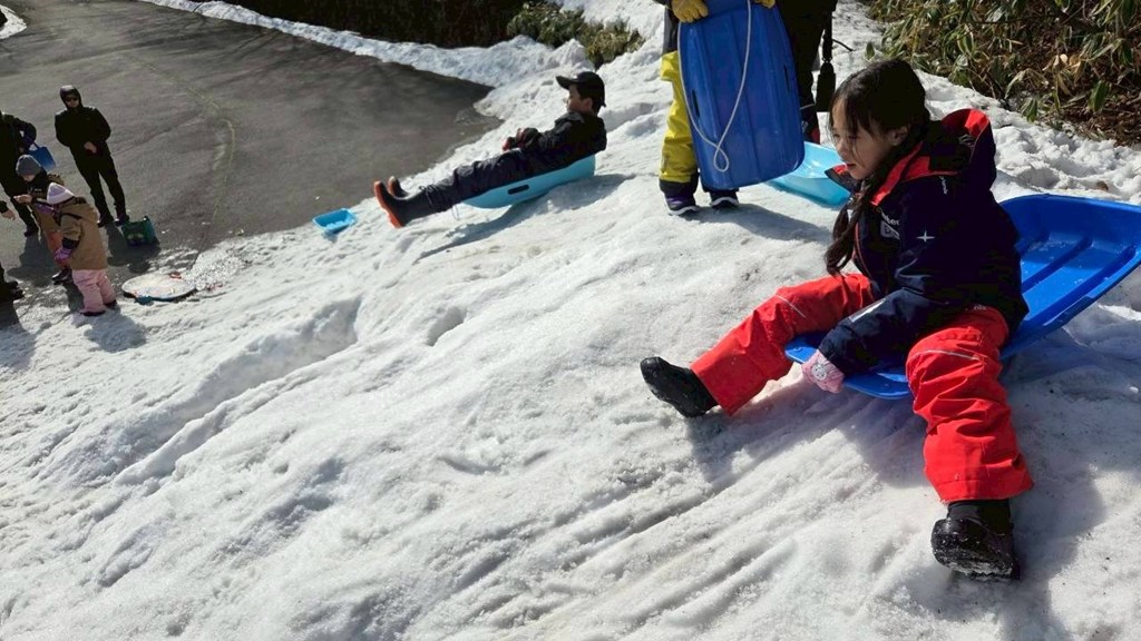 昨日以上にスピードに乗って、何度も斜面を滑走!雪まみれになりながら、歓声が止まりません!🛷