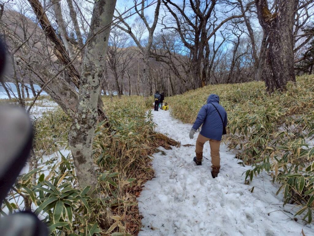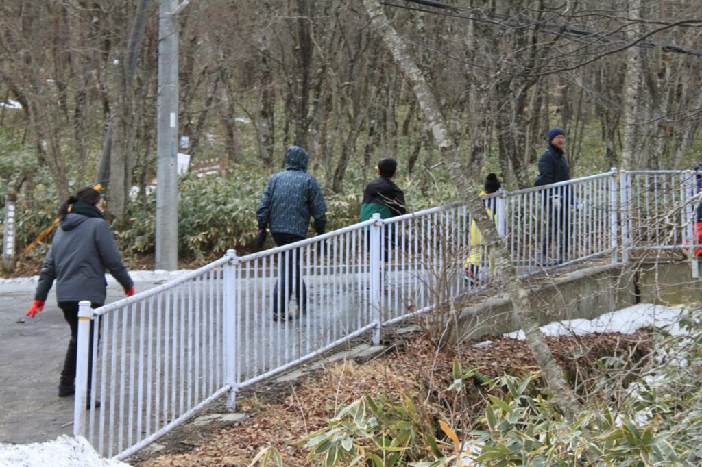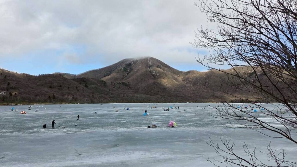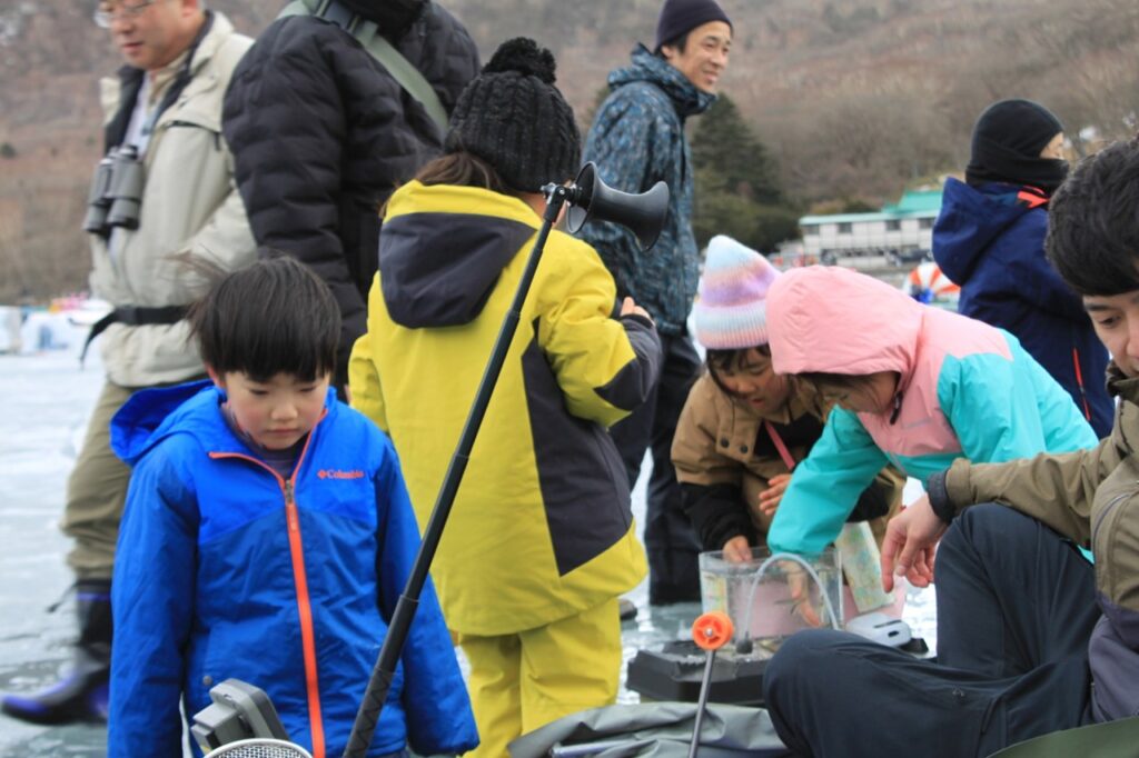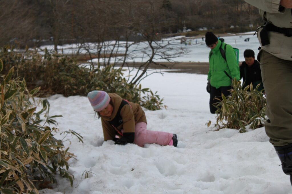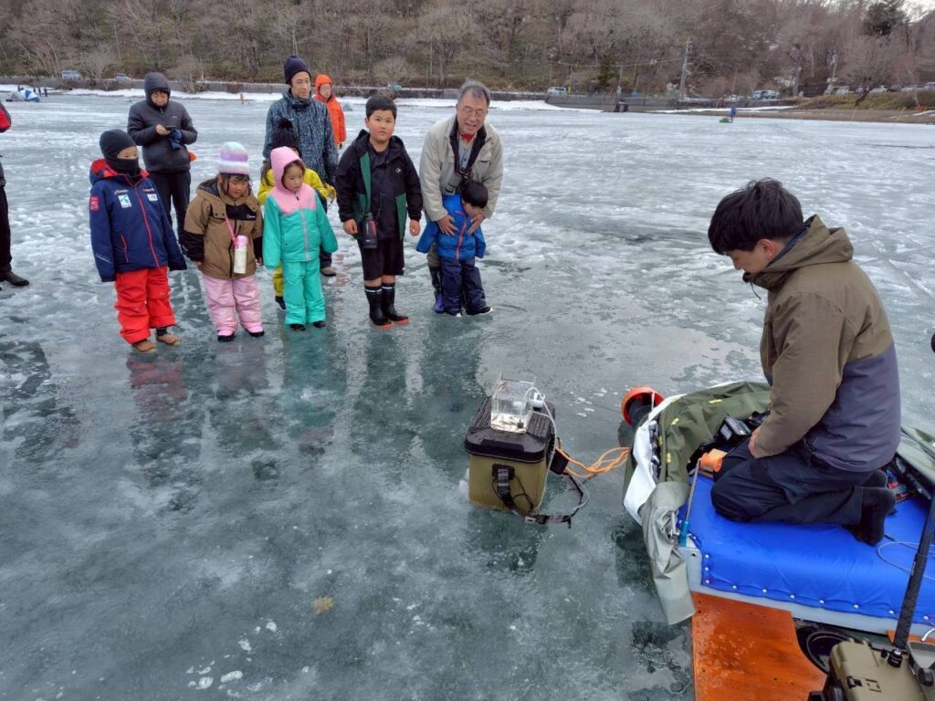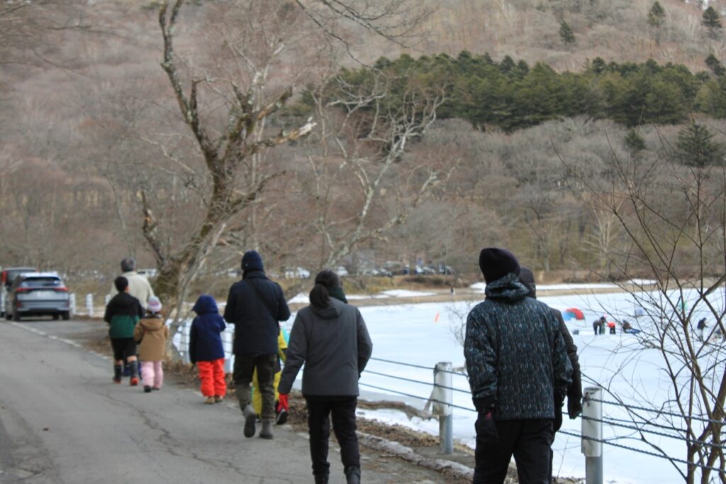 午後は赤城少年自然の家の今井さんから素敵な提案をいただき、急遽「氷上ハイキング」へ出発!🚶♂️ 凍結した大沼の湖面は、まるで別世界のような白銀のフィールドです。一歩踏み出すたびに感じる、氷の不思議な感覚にドキドキ!💓 湖上にはワカサギ釣りのテントが並び、釣り人の方のご厚意で、釣りたてのピチピチしたワカサギを間近で見せてもらいました。🐟 初めて触るスカウトもいて、「冷た〜い!」「透き通ってる!」と大はしゃぎ!自然の神秘と人の温かさに触れた、忘れられない探検ルートになりました。🐾