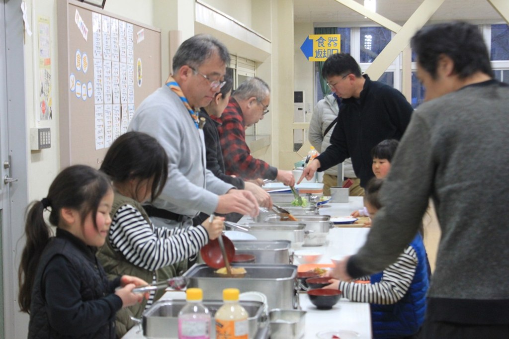 朝の清掃を終えたら、お待ちかねの朝食タイムです!🥖 今回のメインは、ふんわりミートオムレツとパリッとしたウインナー。さらにポテトサラダや納豆、海苔など、和洋折衷の栄養満点メニューです。🥗 2日目ということもあり、給食当番のスカウトたちは驚くほど手際よく配膳を進めてくれました。👏 お互いに声を掛け合いながら、スムーズに準備が進む様子は頼もしい限り!朝からしっかり食べて、これから始まる雪山でのラストミッションに向けて、エネルギーをフルチャージしました!💪✨