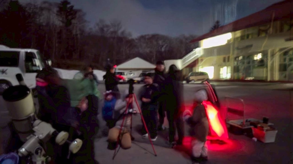 夜は、楽しみにしていた星空観察会です。🌌 星座盤を片手に「冬の大三角」やオリオン座を探し、夜空のキャンバスに描かれた物語を学びました。さらに今回は、施設からお借りした本格的な大口径反射望遠鏡が登場!🔭 覗き込むと、そこには肉眼では見ることのできない、クレーターがくっきりと刻まれた月の姿がありました。🌕「うわあ!ボコボコしてる!」「宇宙が見える!」と、その迫力に一同大感動!残念ながら写真は撮れませんでしたが、スカウトたちの瞳には、宇宙の神秘がしっかりと焼き付いたはずです。✨