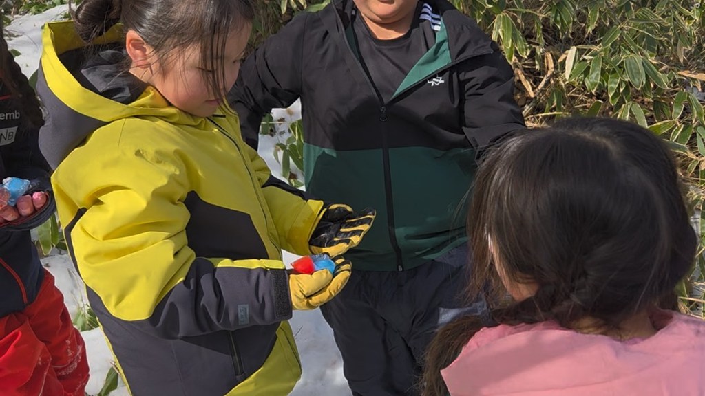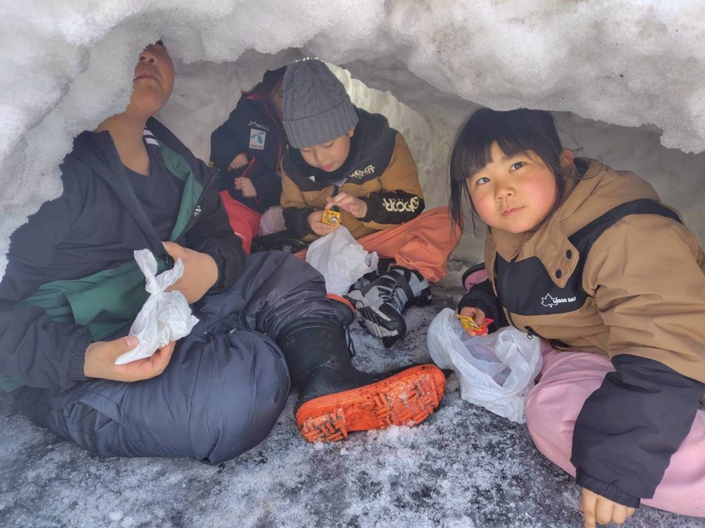 なんと「ゆきのくにのまほうつかい」から手紙が届きました!📩 いたずらな北風が隠した「魔法の宝石(赤と青の氷)」と「おたからカプセル」を捜索!自分たちで作ったかまくらの中で、見つけたお宝のチョコを頬張る瞬間は、まさに魔法のような幸せな時間でした。🍫💎
